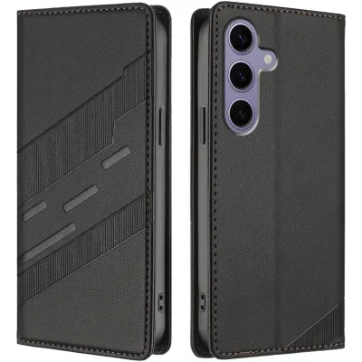 • Phonesta Embossed Lines Book Wallet Case hoesje voor Samsung Galaxy S25 - Zwart