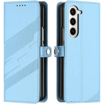 TelefoonhoesjesSamsung Galaxy hoesjesSamsung Galaxy Z Fold 6 hoesjesPhonesta Embossed Lines Book Wallet Case hoesje voor Samsung Galaxy Z Fold 6 - Lichtblauw
