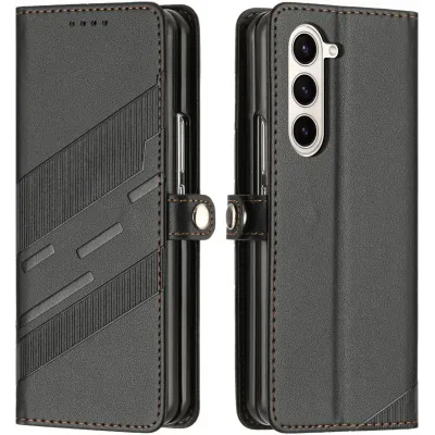 Zoek je een hoes voor je Samsung Galaxy Z Fold 6 die zowel elegante uitstraling als uitstekende bescherming biedt? De Phonesta Embossed Lines Wallet Case is de perfecte optie. Deze Samsung Galaxy Z Fold 6 hoes is vervaardigd uit hoogwaardig polyurethaan (PU) leer en thermoplastisch polyurethaan (TPU), wat zorgt voor een comfortabele grip en duurzame bescherming. De luxe uitstraling van het gegraveerde lijnenpatroon geeft je telefoon niet alleen een modieuze uitstraling, maar biedt ook een uitstekende grip, zodat je je toestel met vertrouwen kunt gebruiken.
