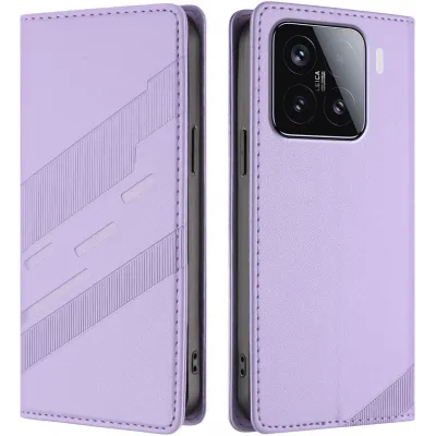 TelefoonhoesjesXiaomi hoesjesXiaomi 15 hoesjesPhonesta Embossed Lines Book Wallet Case hoesje voor Xiaomi 15 - Paars