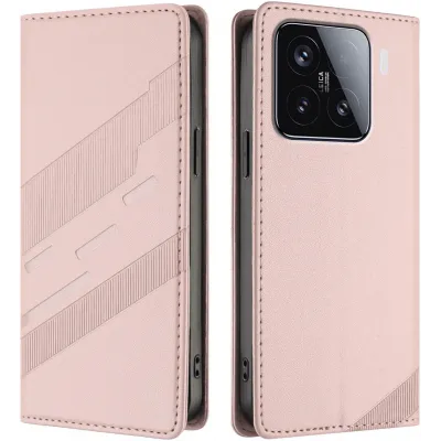 Phonesta Embossed Lines Book Wallet Case hoesje voor Xiaomi 15 - Roze