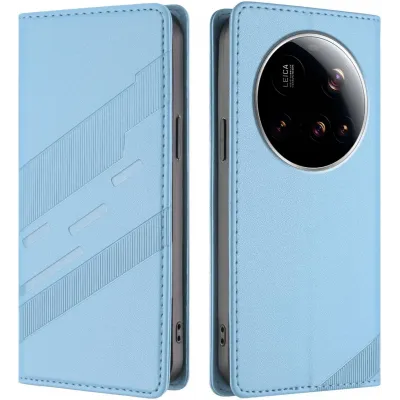 TelefoonhoesjesXiaomi hoesjesXiaomi 15 Ultra hoesjesPhonesta Embossed Lines Book Wallet Case hoesje voor Xiaomi 15 Ultra - Lichtblauw