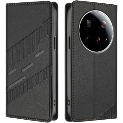 • Phonesta Embossed Lines Book Wallet Case hoesje voor Xiaomi 15 Ultra - Zwart