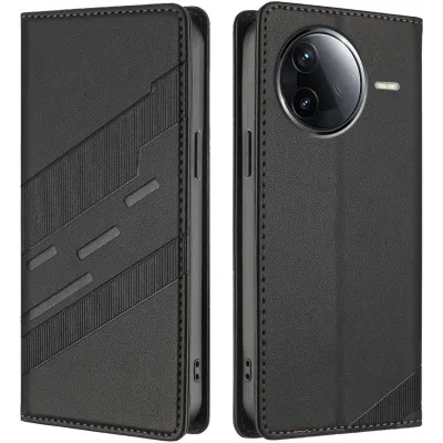 TelefoonhoesjesXiaomi hoesjesXiaomi Poco F7 Ultra hoesjesPhonesta Embossed Lines Book Wallet Case hoesje voor Xiaomi Poco F7 Pro/F7 Ultra - Zwart