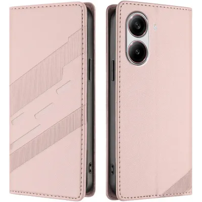 Phonesta Embossed Lines Book Wallet Case hoesje voor Xiaomi Poco X7 Pro - Roze