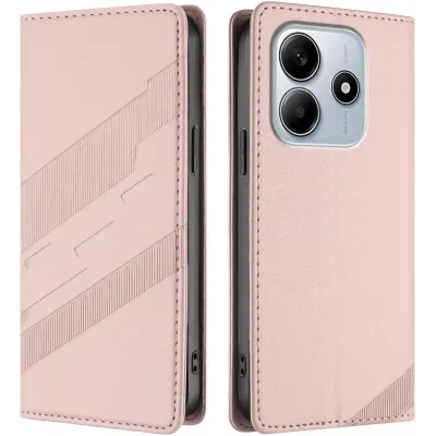 Phonesta Embossed Lines Book Wallet Case hoesje voor Xiaomi Redmi Note 14 4G - Roze
