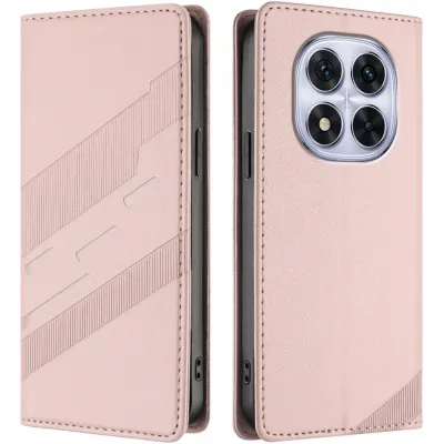 Phonesta Embossed Lines Book Wallet Case hoesje voor Xiaomi Redmi Note 14 Pro 5G/14 Pro Plus / Xiaomi Poco X7 - Roze