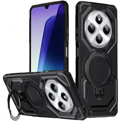 • Phonesta IronLock Back Cover hoesje met ring en MagSafe voor Xiaomi Redmi 14C / Xiaomi Poco C75 - Zwart
