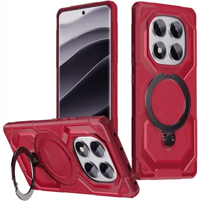 • Phonesta IronLock Back Cover hoesje met ring en MagSafe voor Xiaomi Redmi Note 14 Pro 4G/5G/14 Pro Plus / Xiaomi Poco X7 - Rood