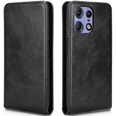 • Phonesta Leather Vertical Flip Wallet Case hoesje voor Motorola Edge 50 Pro - Zwart