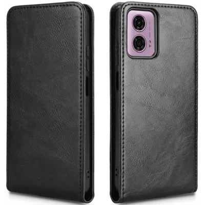 • Phonesta Leather Vertical Flip Wallet Case hoesje voor Motorola Moto G04 / G04s / G24 / G24 Power / E14 - Zwart