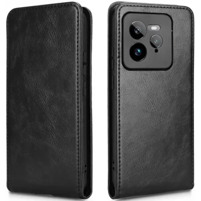Phonesta Leather Vertical Flip Wallet Case hoesje voor Realme GT 7 Pro - Zwart