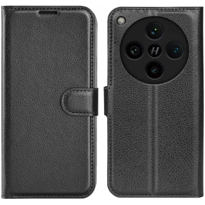 TelefoonhoesjesOppo hoesjesOppo Find X8 Pro hoesjesPhonesta Litchi Skin Book Wallet Case hoesje voor Oppo Find X8 Pro - Zwart