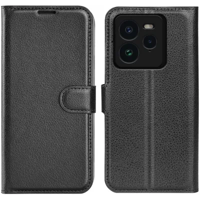 Phonesta Litchi Skin Book Wallet Case hoesje voor Realme GT 7 Pro - Zwart