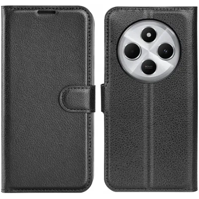 • Phonesta Litchi Skin Book Wallet Case hoesje voor Xiaomi Redmi 14C / Xiaomi Poco C75 - Zwart