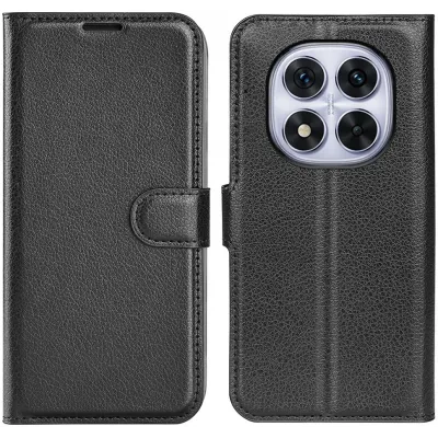 TelefoonhoesjesXiaomi hoesjesXiaomi Poco X7 hoesjesPhonesta Litchi Skin Book Wallet Case hoesje voor Xiaomi Redmi Note 14 Pro 5G / Xiaomi Poco X7 - Zwart