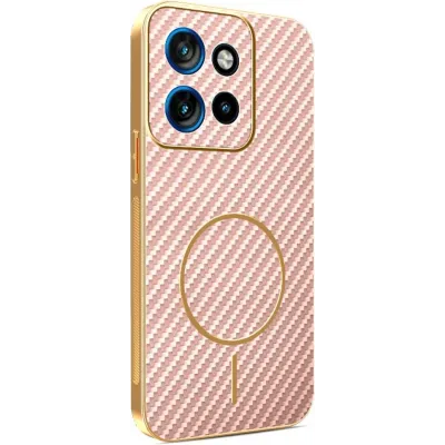 • Phonesta Luxury Carbon Fiber Back Cover hoesje met MagSafe voor Motorola Edge 60 Neo/Edge 50 Neo / ThinkPhone 25 - Roze