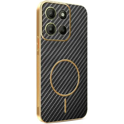 Ontdek het Phonesta Luxury Carbon Fiber Back Cover hoesje met MagSafe, speciaal ontworpen voor jouw Motorola Moto G17/G17 Power/G15/G15 Power. Dit hoesje is gemaakt van flexibel TPU, wat zorgt voor uitstekende schokabsorptie en een perfecte pasvorm. Je kunt erop vertrouwen dat je telefoon goed beschermd is tegen vallen en stoten. De kleur zwart geeft je telefoon een stijlvolle uitstraling, terwijl de premium gouden elektroplated afwerking extra duurzaamheid biedt. Dit maakt het hoesje niet alleen mooi, maar ook sterk genoeg om dagelijks gebruik te weerstaan.