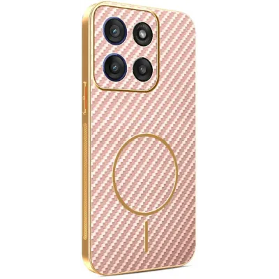 Phonesta Luxury Carbon Fiber Back Cover hoesje met MagSafe voor Motorola Moto G56 - Roze