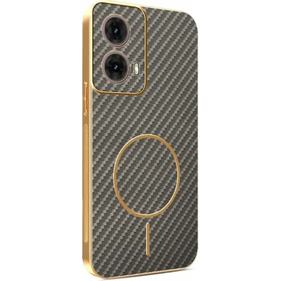 Phonesta Luxury Carbon Fiber Back Cover hoesje met MagSafe voor Motorola Moto G85 - Bruin