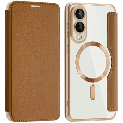 • Phonesta Luxury Crystal Book Wallet Case hoesje met MagSafe voor Samsung Galaxy S25 Edge - Bruin