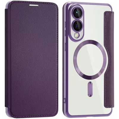 • Phonesta Luxury Crystal Book Wallet Case hoesje met MagSafe voor Samsung Galaxy S25 Edge - Donkerpaars