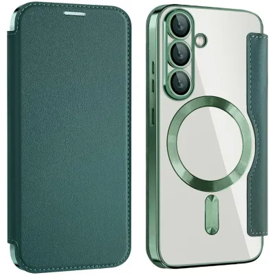 • Phonesta Luxury Crystal Book Wallet Case hoesje met MagSafe voor Samsung Galaxy S25 Plus/S24 Plus - Donkergroen