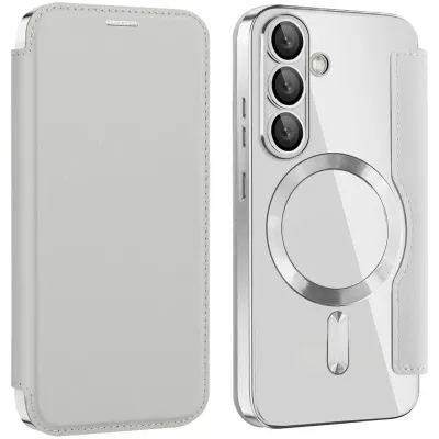 • Phonesta Luxury Crystal Book Wallet Case hoesje met MagSafe voor Samsung Galaxy S25 Plus/S24 Plus - Zilver