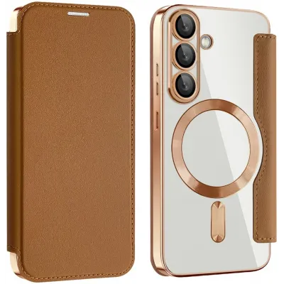 • Phonesta Luxury Crystal Book Wallet Case hoesje met MagSafe voor Samsung Galaxy S25/S24 - Bruin