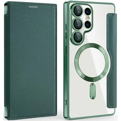 • Phonesta Luxury Crystal Book Wallet Case hoesje met MagSafe voor Samsung Galaxy S25 Ultra - Donkergroen