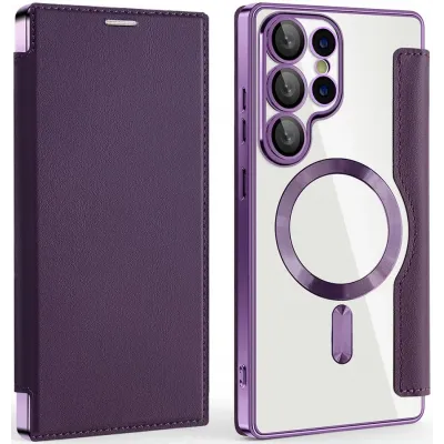 • Phonesta Luxury Crystal Book Wallet Case hoesje met MagSafe voor Samsung Galaxy S25 Ultra - Donkerpaars