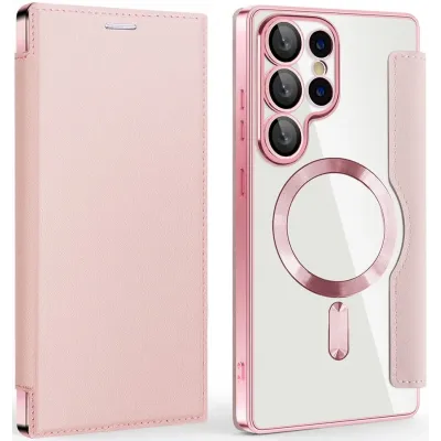 • Phonesta Luxury Crystal Book Wallet Case hoesje met MagSafe voor Samsung Galaxy S25 Ultra - Roze