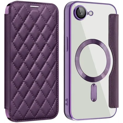 • Phonesta Luxury Crystal Puffed Book Wallet Case hoesje met MagSafe voor Apple iPhone 17e/16e - Donkerpaars