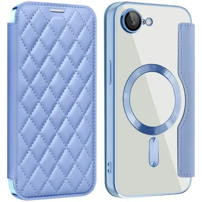 • Phonesta Luxury Crystal Puffed Book Wallet Case hoesje met MagSafe voor Apple iPhone 17e/16e - Lichtblauw