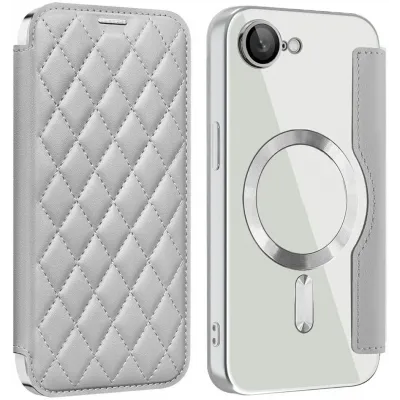 • Phonesta Luxury Crystal Puffed Book Wallet Case hoesje met MagSafe voor Apple iPhone 17e/16e - Zilver