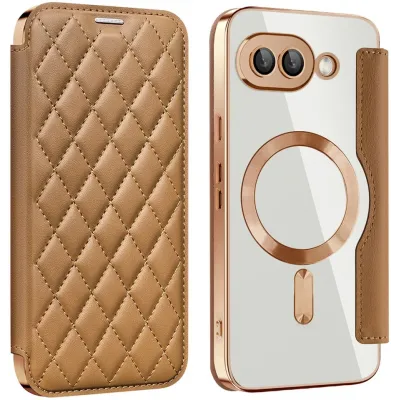 TelefoonhoesjesGoogle hoesjesGoogle Pixel 9a hoesjesPhonesta Luxury Crystal Puffed Book Wallet Case hoesje met MagSafe voor Google Pixel 9a - Bruin