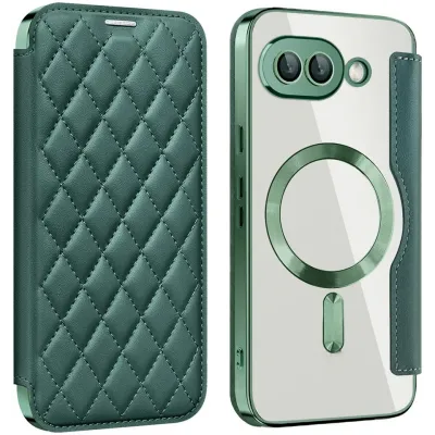 TelefoonhoesjesGoogle hoesjesGoogle Pixel 9a hoesjesPhonesta Luxury Crystal Puffed Book Wallet Case hoesje met MagSafe voor Google Pixel 9a - Donkergroen