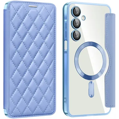 TelefoonhoesjesSamsung Galaxy hoesjesSamsung Galaxy A16 hoesjesPhonesta Luxury Crystal Puffed Book Wallet Case hoesje met MagSafe voor Samsung Galaxy A16 - Lichtblauw