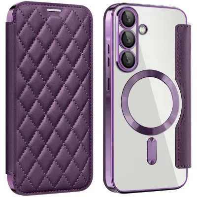 • Phonesta Luxury Crystal Puffed Book Wallet Case hoesje met MagSafe voor Samsung Galaxy A36/A56 - Donkerpaars