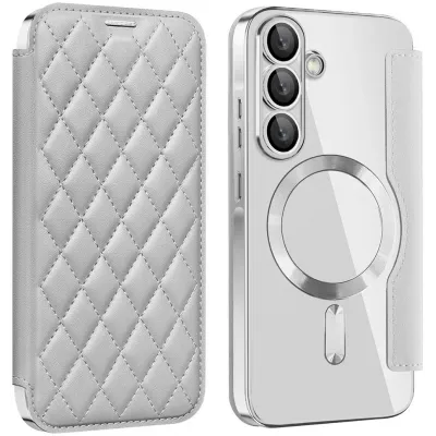 • Phonesta Luxury Crystal Puffed Book Wallet Case hoesje met MagSafe voor Samsung Galaxy A36/A56 - Zilver