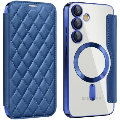 • Phonesta Luxury Crystal Puffed Book Wallet Case hoesje met MagSafe voor Samsung Galaxy S24 FE - Donkerblauw