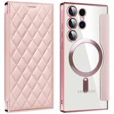 • Phonesta Luxury Crystal Puffed Book Wallet Case hoesje met MagSafe voor Samsung Galaxy S24 Ultra - Roze
