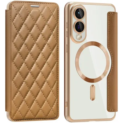 • Phonesta Luxury Crystal Puffed Book Wallet Case hoesje met MagSafe voor Samsung Galaxy S25 Edge - Bruin