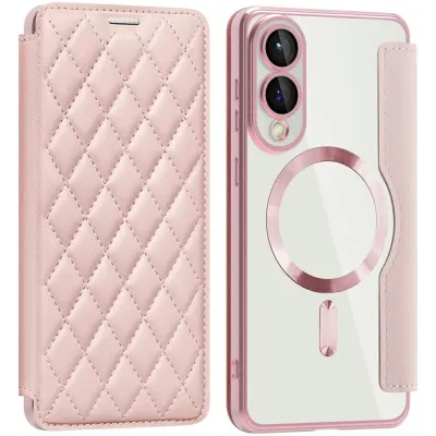 • Phonesta Luxury Crystal Puffed Book Wallet Case hoesje met MagSafe voor Samsung Galaxy S25 Edge - Roze