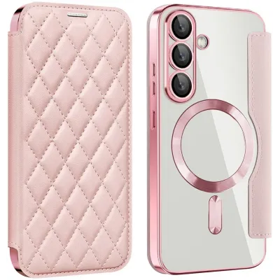 • Phonesta Luxury Crystal Puffed Book Wallet Case hoesje met MagSafe voor Samsung Galaxy S25 Plus/S24 Plus - Roze