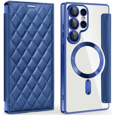 • Phonesta Luxury Crystal Puffed Book Wallet Case hoesje met MagSafe voor Samsung Galaxy S25 Ultra - Donkerblauw