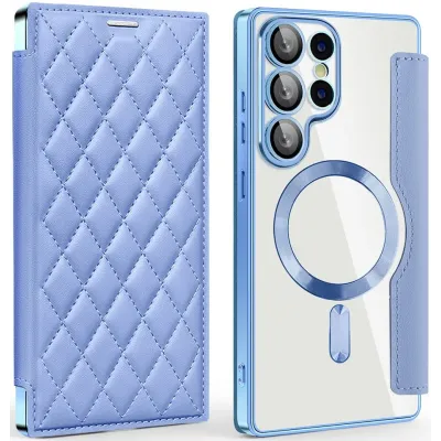 • Phonesta Luxury Crystal Puffed Book Wallet Case hoesje met MagSafe voor Samsung Galaxy S25 Ultra - Lichtblauw