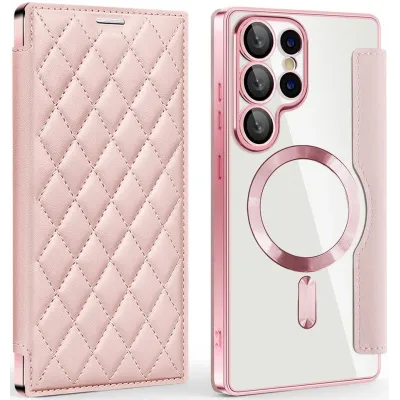• Phonesta Luxury Crystal Puffed Book Wallet Case hoesje met MagSafe voor Samsung Galaxy S25 Ultra - Roze