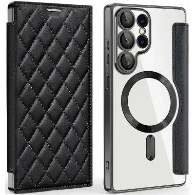 • Phonesta Luxury Crystal Puffed Book Wallet Case hoesje met MagSafe voor Samsung Galaxy S25 Ultra - Zwart