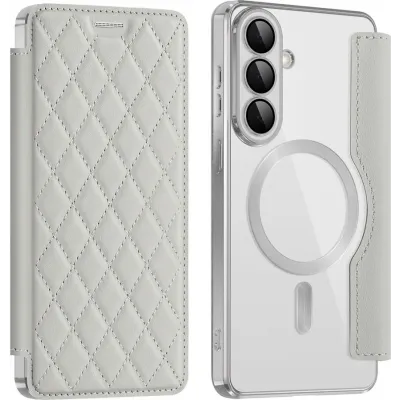 • Phonesta Luxury Crystal Puffed Book Wallet Case hoesje met MagSafe voor Samsung Galaxy S26 Plus - Zilver